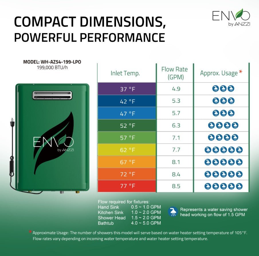 Anzzi Envo Tankless Water Heater Outdoor Propane Gas 8.4 GPM 199,000 BTU 120V New